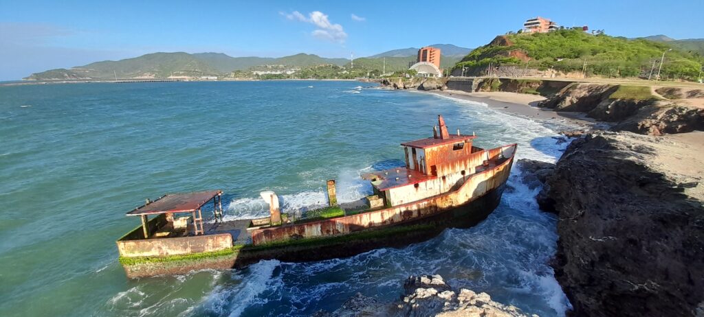 An abandonded fishing boat in Sucre, Venezuela, the coastline where the U.S. navy initially targeted suspected drug boats with controversial deadly strikes. Photo: Steve Hide